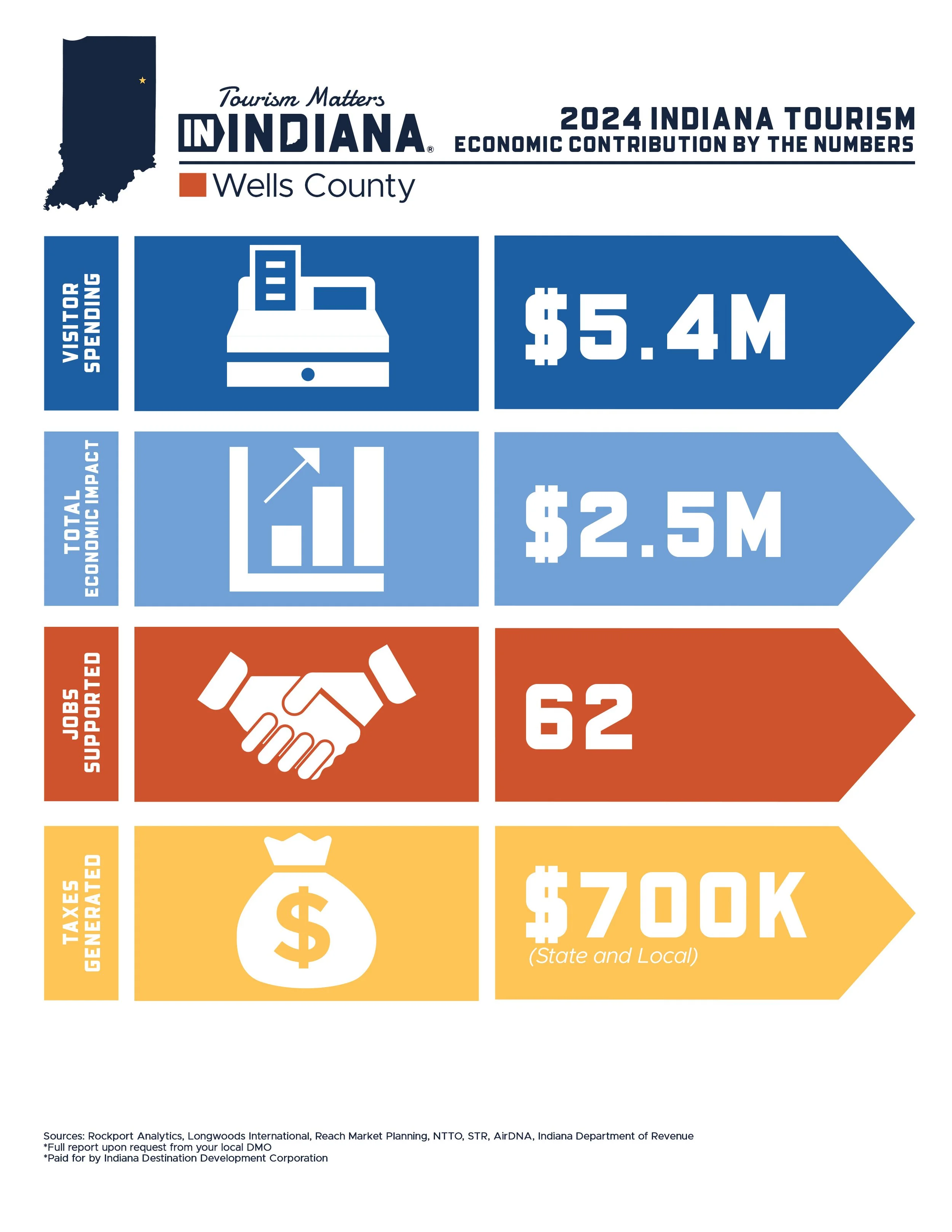 With these funds the Wells County Convention and Tourism Commission hopes to champion Visitor Economy by providing resources valuable to Wells County visitor assets engaged in lodging, conventions, event venues, public events, dining, recreation & leisure etc. The Commission highly values the input of it’s tourism partners as we continue to invest in and support the visitor experience here in Wells County.
